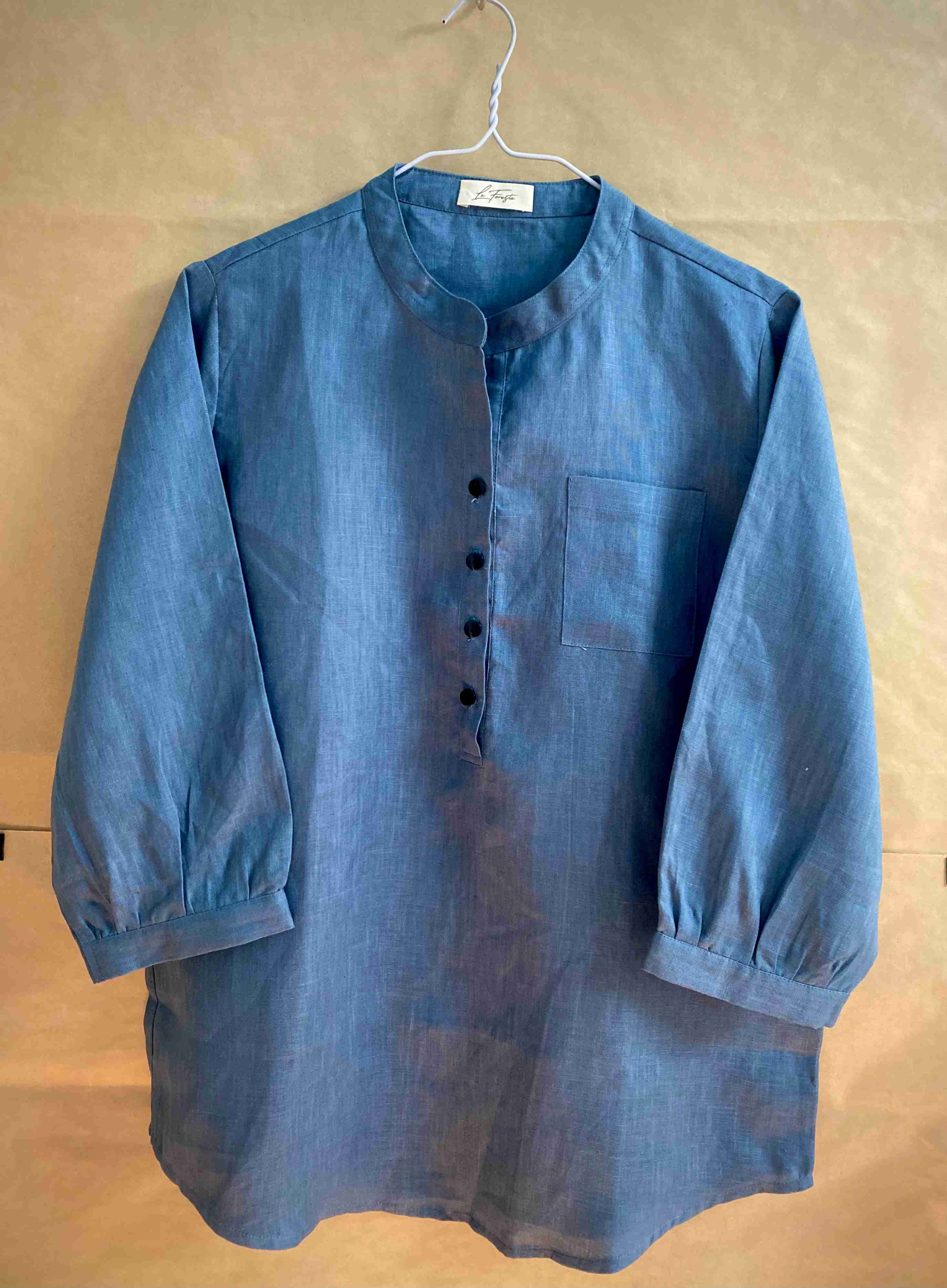 Sơ mi freesize, cổ tròn, chui đầu, đóng cúc trước, tay lỡ.