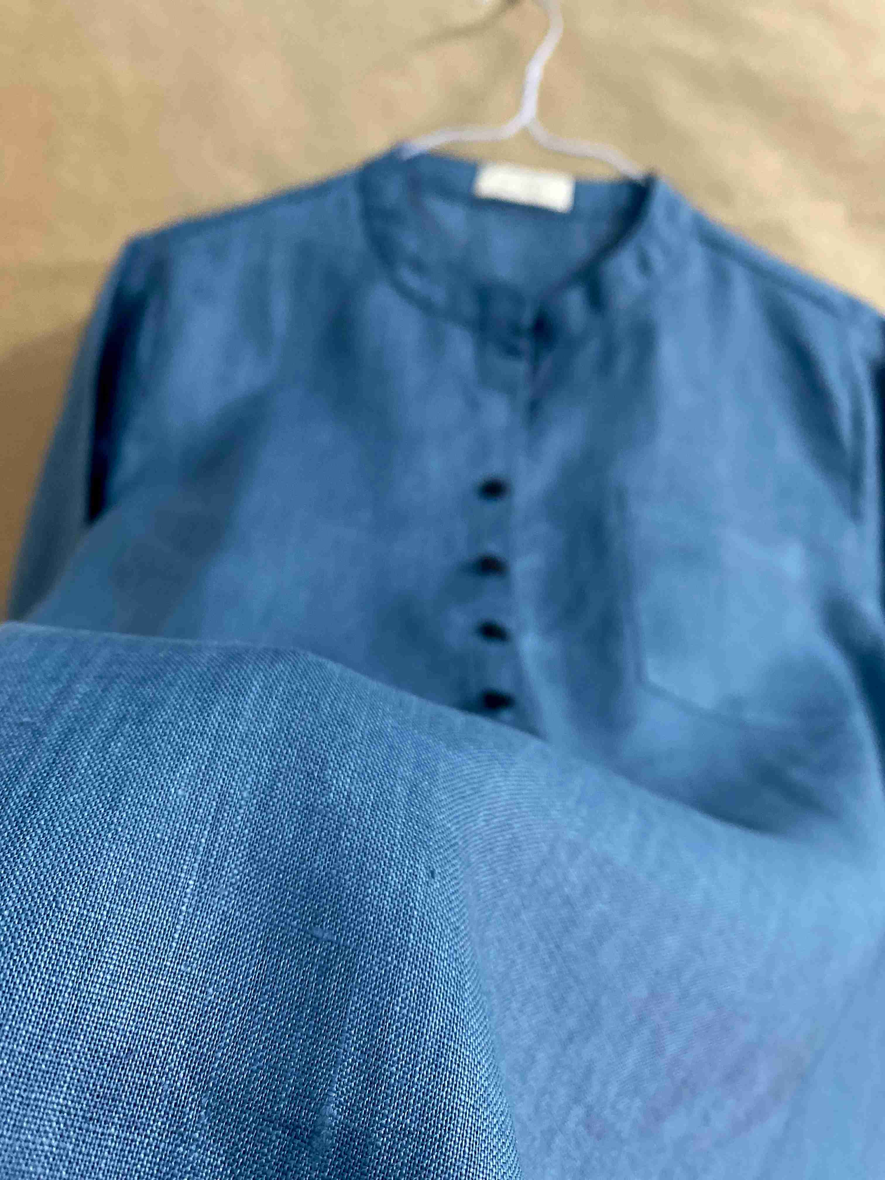 Sơ mi cổ tròn, chui đầu, đóng cúc trước, tay lỡ, freesize.
