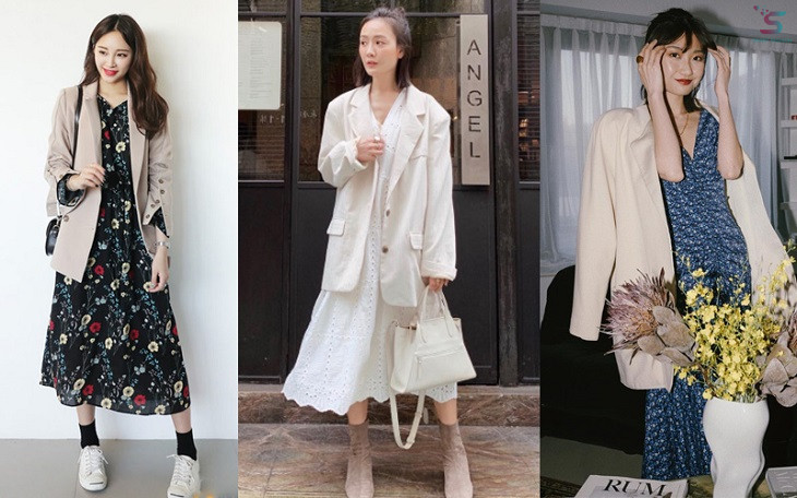 Ngoài những mẫu áo khoác quen thuộc như áo denim, áo khoác cardigan hay áo khoác da,… Áo blazer cũng là một trong những item đặc biệt ăn ý khi kết hợp cùng các mẫu váy liền khác nhau. Nét ngọt ngào, dịu dàng từ các kiểu váy kết hợp với sự hiện đại, phong cách từ áo blazer sẽ giúp tăng thêm điểm nhấn và thời thượng không kém phần cho chị em mỗi lần xuống phố.