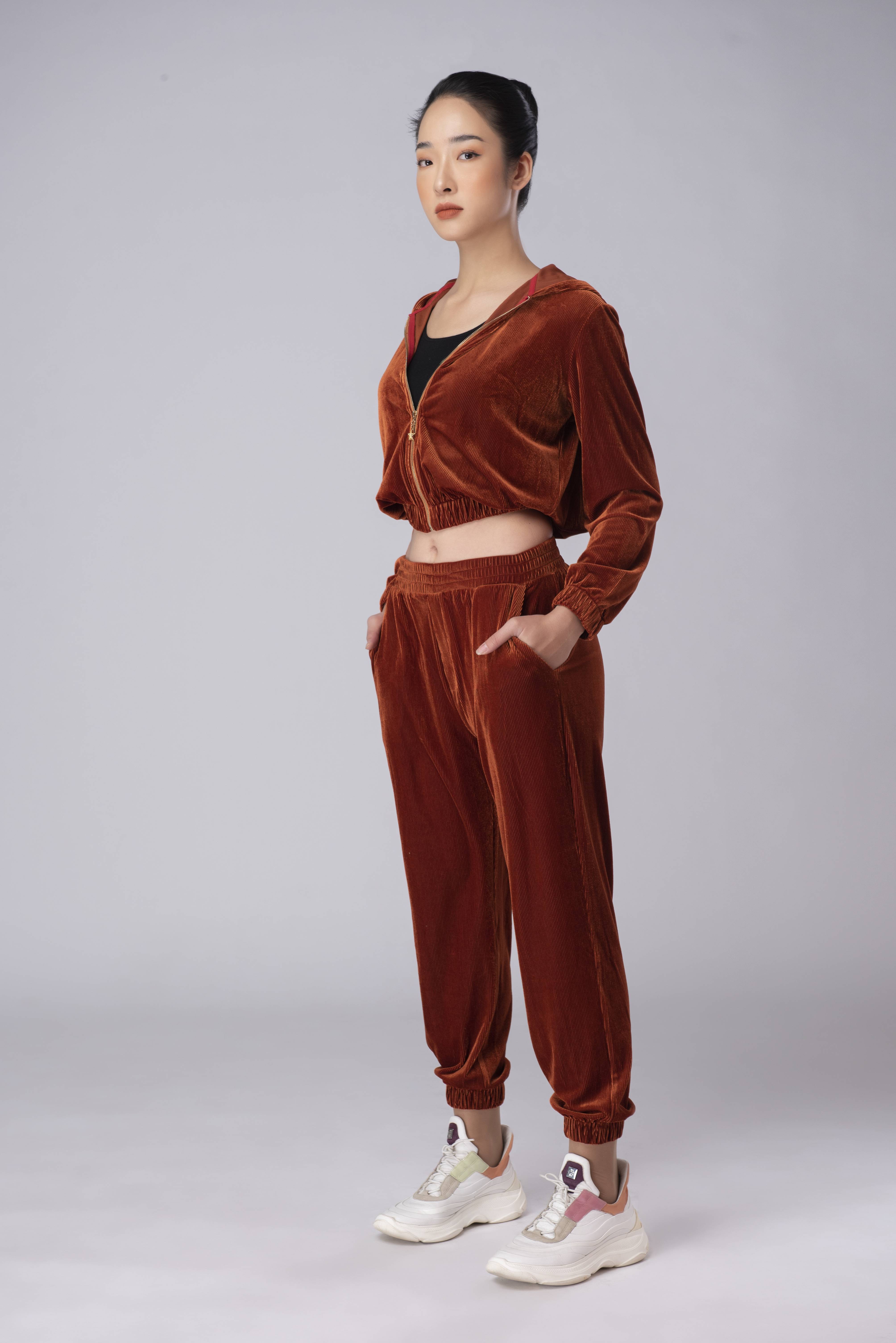 BỘ THỂ THAO TRACKSUIT CHẤT LIỆU NHUNG TĂM CAO CẤP MỀM MỊN, CO GIÃN VÀ GIỮ NHIỆT. THIẾT KẾ ÁO DÁNG CROPTOP KÉO KHÓA, GẤU ÁO VÀ TAY ÁO BO CHUN BẢN RỘNG, CÓ MŨ. QUẦN DÁNG THỂ THAO, CẠP VÀ GẤU BO CHUN, TÚI CHÉO 2 BÊN.