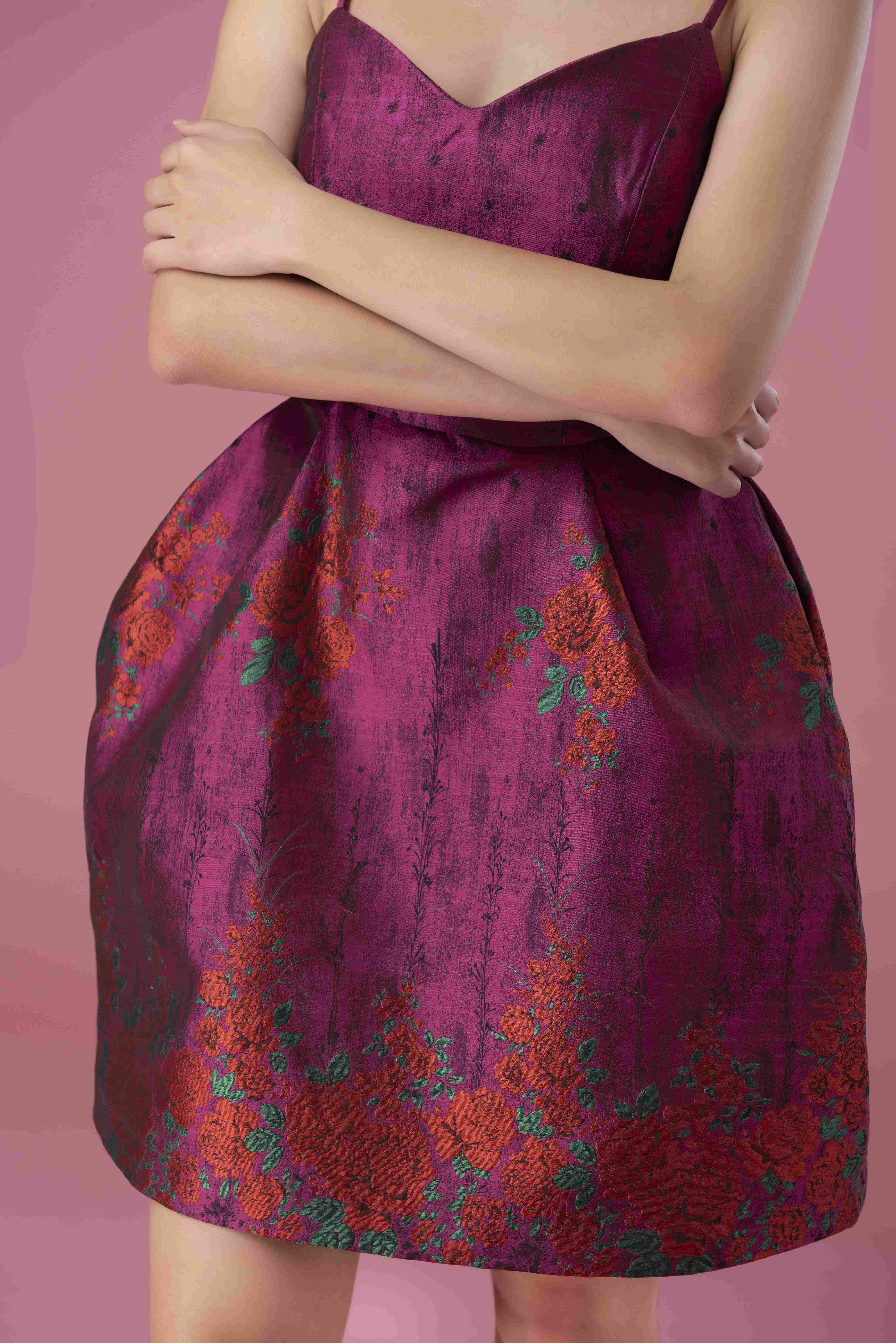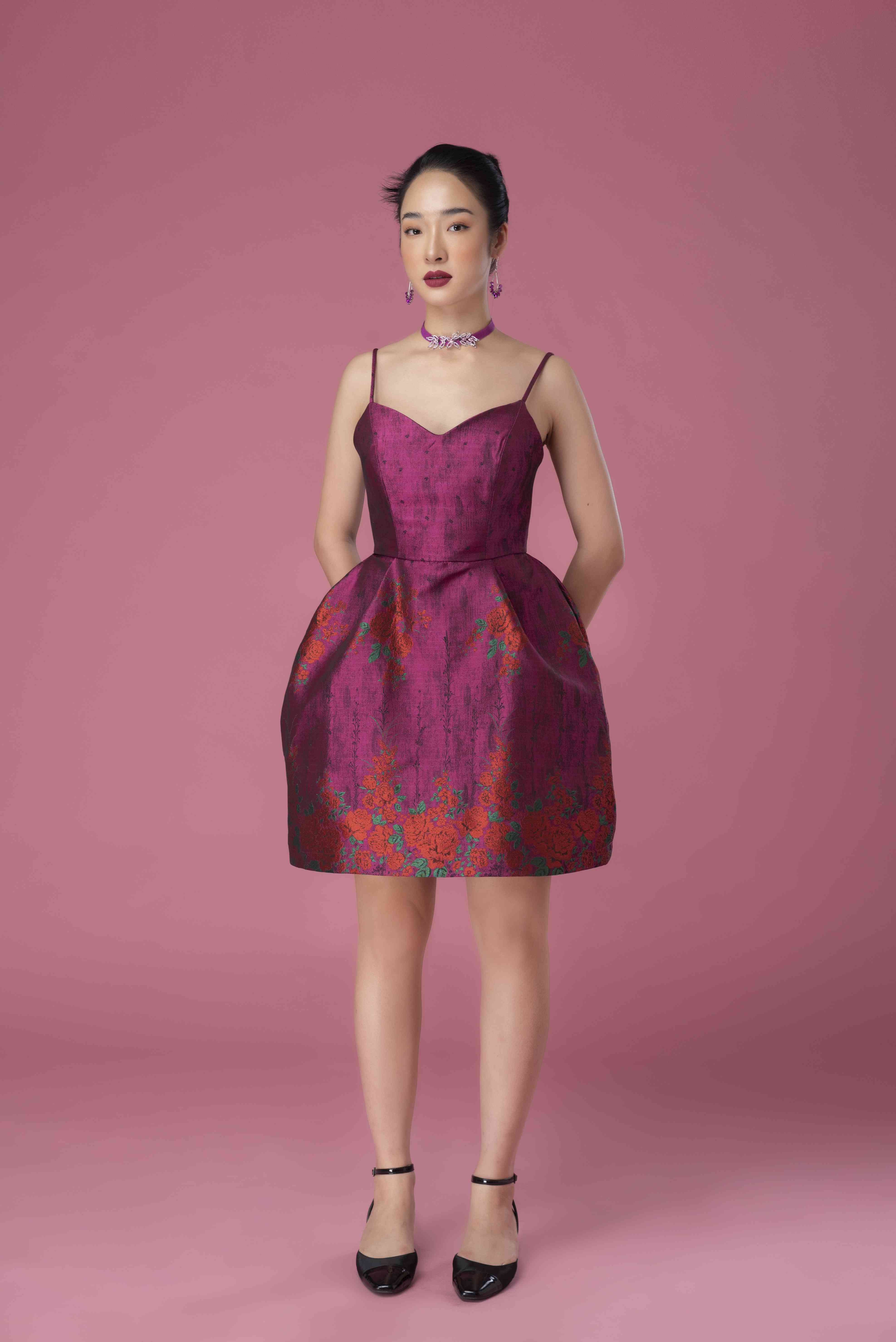VÁY ĐẦM LIỀN CHẤT LIỆU TAFFA CỨNG VÀ ĐANH VẢI. THIẾT KẾ 2 DÂY CÚP NGỰC, THÂN VÁY XẾP LY BỒNG.